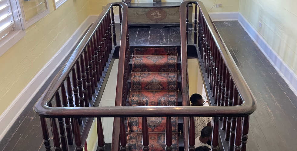 Inside the house, visitors encounter historic interior elements including a mahogany staircase and landing, reused from a ship. This detail highlights the resourcefulness of early builders in Nassau, who often reused materials from maritime trade or shipwrecks.
