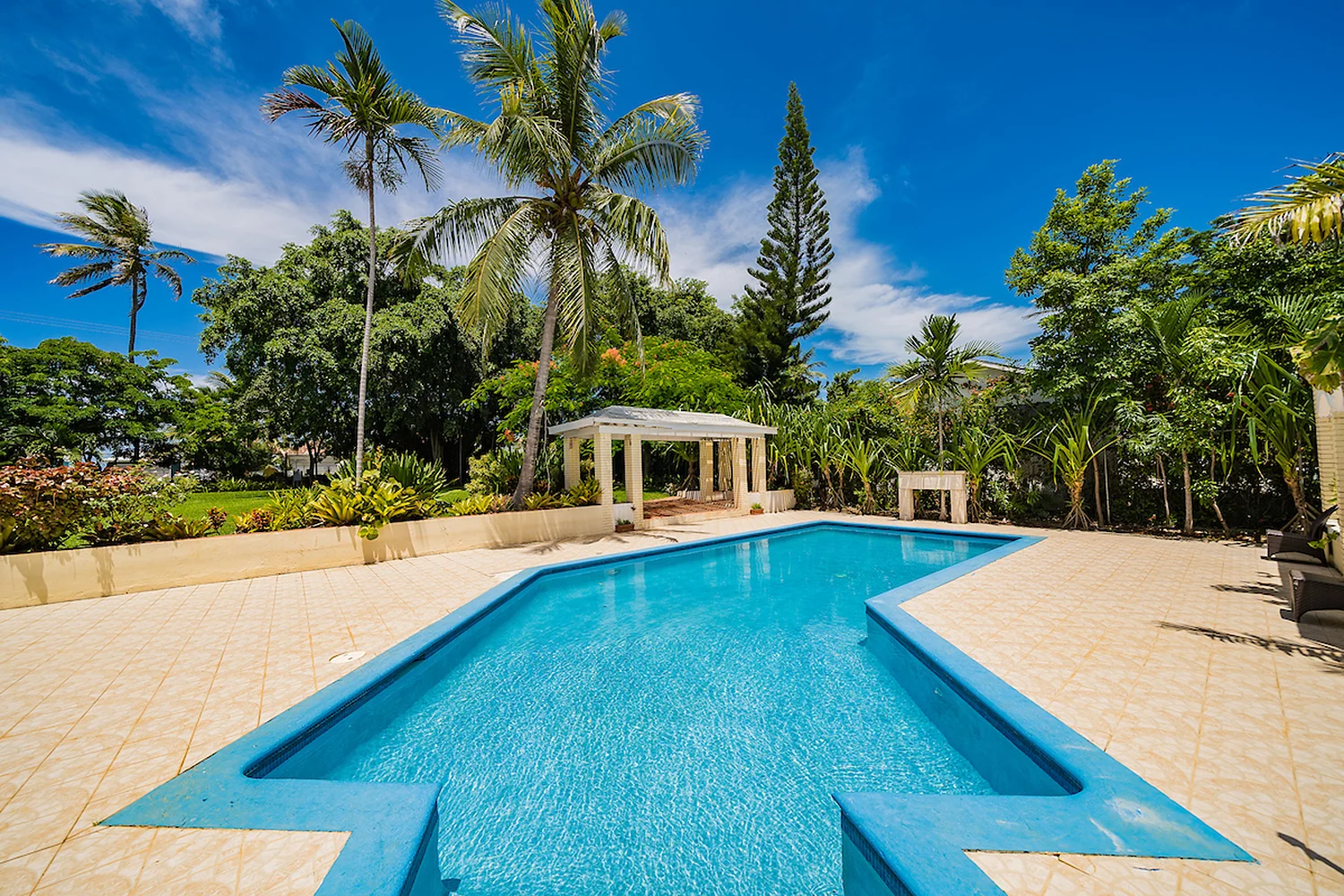 Originally built as a home for rum running during the prohibition era, this home features 4 generously sized en-suite bedrooms, a large living room with a fireplace, dining room and Bahama room overlooking the pool. Unlike many Bahamian homes, this home features a full-height basement that had a tunnel passage out to sea to transport rum to boats. Though the tunnel has long been closed up, the full-height basement remains.